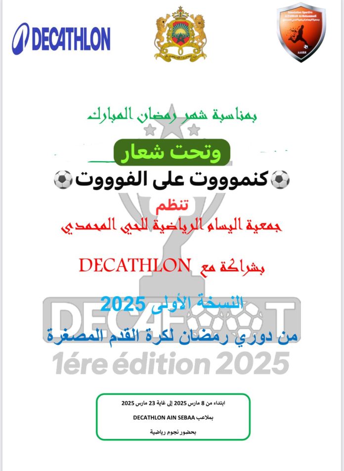 في إطار انشطتها الرياضية تنظم جمعية اليسام الرياضية دوري في كرة القدم المصغرة بشراكة مع شركة Decathlon