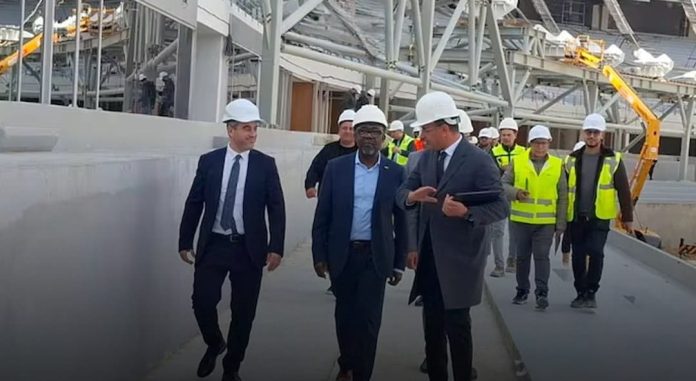 وعرفت الأيام الأخيرة زيارة ميدانية مهمة قادها الكاتب العام للكاف رفقة وفد يضم مسؤولين من الجامعة الملكية المغربية لكرة القدم، إضافة إلى مهندسين وتقنيين من الشركات المشرفة على المشروع. وقد تم الوقوف على مدى تقدم الأشغال، خاصة فيما يتعلق بالبنية التحتية، مع الإشادة بالتطور الملموس في سير العمل، رغم بعض المراحل الحساسة التي لا تزال قيد التنفيذ، كأشغال تثبيت السقف والواجهة الخارجية، وأرضية الميدان التي ستُشرع أشغالها مطلع ماي المقبل.
